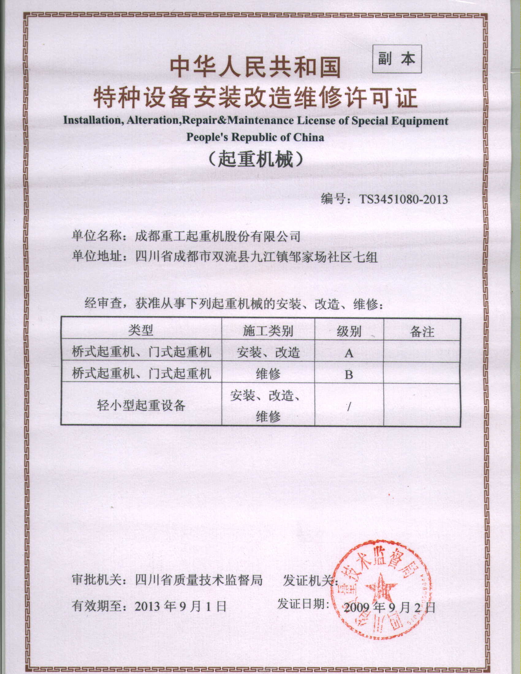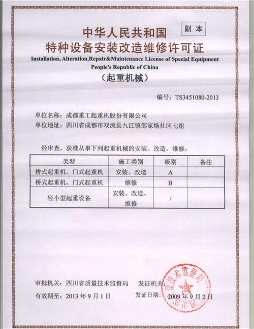 成都重工起重機(jī)股份有限公司©2012 版權(quán)所有 地址:成都市雙流西南航空港經(jīng)濟(jì)開發(fā)區(qū)空港三路903號(hào)